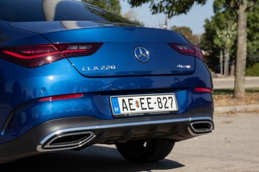 Az egész modell jól elkülöníthető, egyszerű formákból építkezik, amely talán oldalról a legszembetűnőbb. AMG Line felszereltség ide vagy oda, kellemes vonalú, kupétetős szedánformát kapunk, nem sokkal többet: az olyan kötelező elemeken kívül, mint a tükör, kilincsek, lámpák és felnik, csak az enyhén felfelé ívelő övvonal, valamint az ablakok körül végigfutó díszléc az adalék. A CLA hátulja már egy kicsit bevállalósabb: a formás lámpák, a krómozott kipufogók között meghúzódó diffúzor, valamint a kissé ferde, befelé dőlő dizájn rosszfiús beütéssel fűszerezi az eleganciát. Az orr ehhez képest megint visszafogottabb: finom vonalvezetésű, letisztult, amolyan tipikus Mercedes.