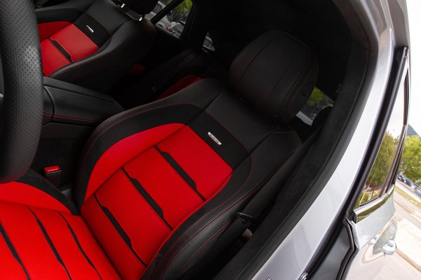 A belteret a legtöbb kollégám minden bizonnyal bazári kategóriába sorolná, de nálam valahogy betalált a piros cérnával varrott bőr, a perforált, AMG-plakettes üléskárpit, és a komikusan vastag kormány, amin kis túlzással több a gomb és a funkció, mint egy régi Insignia középkonzolján. Oké, a zongoralakkot lassan tényleg elfelejthetnénk már, de a vásárlók még mindig szeretik, mert szépen csillog a szalonban, ugyanez a helyzet a sok műkrómmal is, de ez a kategória már csak erről szól: pont annyira lett sportautó, amennyit a karbonbetéttel nyerünk a 2375 kilós menetkész tömegéhez.
