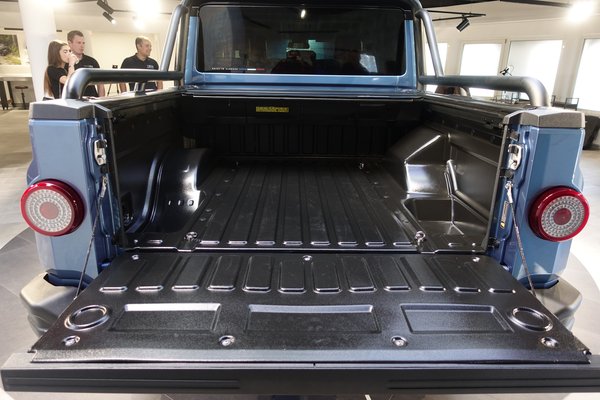 Mivel az alap Grenadier a hátsó ajtón hordja a pótkerekét, így a most bemutatott változaton a platón képeztek ki neki egy vályút. Mivel a kiállított darabban nem volt benne, csak reménykedni tudok, hogy alaposan rögzítik a platóhoz, mert vonatkozó csoportokból az derül ki, hogy például Budapesten, főleg a plázák mélygarázsában nem ritka a keréklopás. Igaz, a Grenadier a maga két méter feletti magasságával a mélygarázsok nagy részébe úgyse fér le.