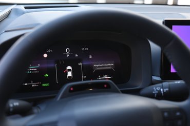 Eggyel érdekesebb a kamerás belső tükör, ami elsőre kissé furcsa, viszont nagyon jól paraméterezhető a látómezője, én abszolút meg tudnám szokni, és ha kikapcsolja az ember, akkor ugyanúgy egy sima tükör, mint eddig volt, szóval problémát biztosan nem okoz majd, de én mindenképpen adnék neki egy esélyt. Majdnem annyira tetszett a HUD, mint a fotón látható Renault 4-es: egyrészt pont jó a fényereje, másrészt éles a képe, harmadrészt egyáltalán nem látszik menet közben, hogy hova és mire vetíti a képet. Elvileg jön a digitális, mobilos kulcs is, de azt csak egy 2024-es frissítéssel ígéri a gyártó.