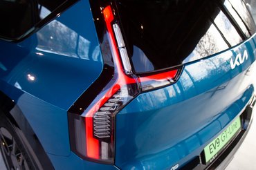 Elöl a digitális tigrisarc, hátul a csillagkép LED lámpák, hisz muszáj hasonlítani valamihez. A Kia szerint az EV9 összetéveszthetetlenül SUV. A 21 colos téli kerekekkel és ilyen profillal valóban nehéz lenne másnak hinni, bár az utastérben vannak egyterűekre jellemző megoldások is.