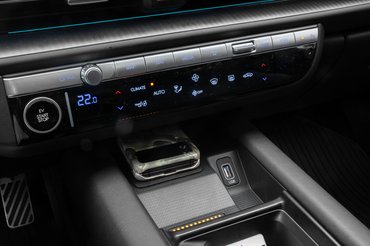 Huzamosabb ideig ülve az Ioniq 6-ban el kell ismerni, hogy kimondottan kényelmesek az ülései, a gombnyomásra beállítható pihenő állás tényleg kényelmes. Aludni mondjuk nem lehet jó benne. A beltér praktikus a rengeteg tárolóval, az ablakemelő gombok nem az ajtókon, hanem középen találhatóak, a fontos menüpontoknak pedig vannak fizikai gombjai - kivétel a fűtésnek. Ugyanis ezek érintős gombok, amiknek nincsen haptikus visszajelzése, így párszor elterelte a figyelmemet az útról. A 12,3 colos infotainment kijelző éles, pontos, bár ha valamit a jobb harmadában akarsz megnyomni, akkor készülni kell egy alapos nyújtózkodásra. A hangulatvilágítás minimálisan javít az amúgy egyszínű beltéren, de a műszerfal és az ajtó néhány borítása szörnyen olcsónak hat.