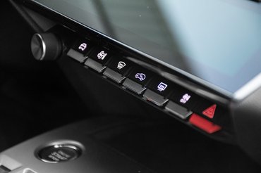 A középkonzol bebizonyítja, hogy van élet a tablet és monitor méretű kijelzőkön innen is. A 10 colos érintőképernyőt beépítették az egyébként kellemesen rövid, íves műszerfalba, majd BMW-sen a vezető felé fordították. Ezt már jól ismerjük a 308-asokból az i-Toggle gombokkal együtt. Ezek azért jók, mert lehet őket konfigurálni, és anélkül segítenek a keresett menübe jutni, hogy térképet kellene mellékelniük a franciáknak a művelethez. Plusz pontot ér, hogy nem feledkeztek meg a fizikai gombokról sem, még úgy is, hogy a funkciók ismétlődhetnek.