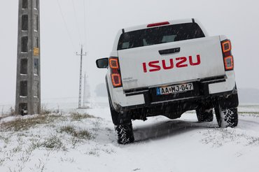 Egyetlen gond a D-Max alapáras fehér festésével az, hogy csak bemocskolni akarja az ember. Tehát kell mellé egy nagynyomású mosó is, hiába áll nagyon jól azoknak a szürke kerekeknek a téli sár. Ha pedig fagy, szerencsére a hóban is megtalálod, hisz piros nagybetűkkel írták rá, hogy nem egy Toyota.