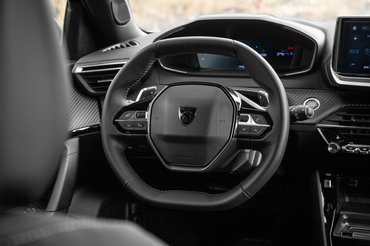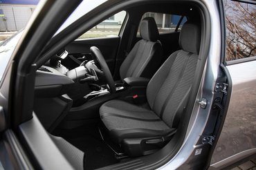 Akármennyit állítgattam a kormányt és az ülést, egy komplett hét után se lett meg az a pozíció, amikor nem fészkelődtem. A kormány apró sokszög, parkolásnál és nagyobb mozdulatoknál fura használni, és a háromszög-keresztmetszet se kellemes a kéznek. Mindezt tetézi, hogy baromi alacsonyra kell állítani – igazán magas állása nincs is –, ha látni akarjuk a műszereket. Furcsa érzés volt úgy vezetni, hogy a kormány túlzás nélkül az ölemben volt. Ismerek sok embert, aki szereti az i-Cockpitot, és nem érti, hogy mi bajom vele, én viszont képtelen vagyok megszokni. Az üléspozíció így nekem sehogy nem adta ki, pedig az ülések nem lennének rosszak: kényelmesek és tartanak, viszont egy hosszabb ülőlapot még megérdemelnének.