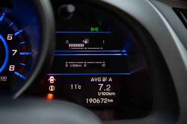 Tamás 190 ezret futott autójának szövet sofőrülésén a deréktámasz kopásnak indult a klasszikus pontokon, de sebaj, 12 évesen már elnézi az ilyet az ember. A beltér többi eleme megúszta a bomlást, csak a kormány bőrözésén látszik a kor, na meg az izzadt kéz okozta kopás utal arra, hogy úgy használták a CR-Z-t, ahogy illik. Az ajtókárpitokon halvány foltok látszanak, a váltógombon pedig hajszálkarcok nyújtották a használt autós hangulatot, de ezt Tamás már lecserélte egy újra.