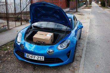 Magasabb dobozt kéne szállítani? Felejtős, illetve maximum az utastérbe, a csapatások alatt az utas kényelmét szolgáló alumínium taposólemez elé. Specifikus, ám nekem releváns felfedezés, hogy egy 12 palackos karton bor sem fér be, ami azért kellemetlen, mert épp egy borász barátom fontolgatja egy A110 beszerzését.
