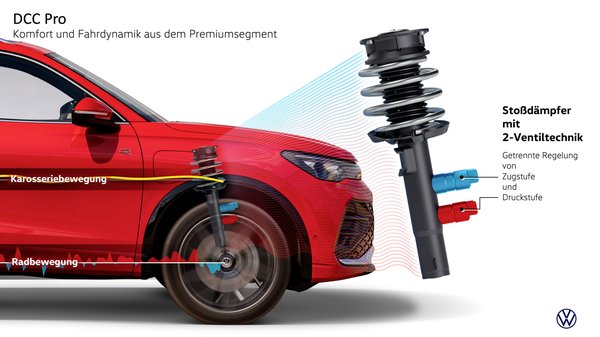 A futóműfejlesztők is készültek egy nagy meglepetéssel, MacPherson rugóstagnál az új Tiguanban vetettek be először kétszelepes lengéscsillapítást. A DCC Pro rendszere képes külön kezelni az összenyomódást és a kiengedést, tehát rossz útfelületre érkezve azonnal lágyabbra tudja váltani a hangolást. A francia vidéken volt olyan útszakasz, ahol tudtam tesztelni a képességeit, és ha nem is ámulatba ejtő, de elmés ötletnek tartom. Mivel a komplett elektronikai rendszer részt vesz a működtetésében, a menetstabilizáló jelei alapján minden helyzetben optimalizálja a mozgását az úton.