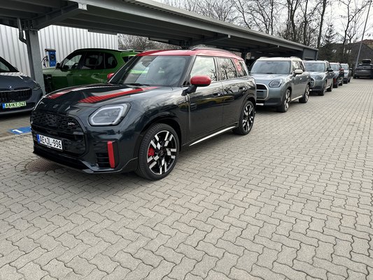 Egészen a festői Vecsésig utaztunk ezekért az infókért, ám nekünk most inkább a Countryman volt az érdekes, hiszen azokat vezethettük is, méghozzá egy sima C és JCW változatot hoztak el nekünk. Előbbi a polgári Mini SUV, míg másik a kanosra hergelt vaddisznó John Cooper Works (JCW) változat, egyértelmű, hogy melyik izgatott jobban.