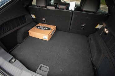 Bár a tengelyek közt nagyobb a távolság, a Mustang Mach-E rövidebb, mint egy Tesla Model X, miközben hosszabb, mint egy Volkswagen ID.5. Mivel összességében egy orbitális ötajtós, a csomagtér is kellően bőséges a maga 402 literes, illetve a hátsó sor ledöntésével már 1420 literes kapacitásával. A kalaptartó kiemelése után plafonig lehet tömni a flexibilisebb rakománnyal, elől pedig akad további 100-120 liter, mondjuk két levegősen hagyott hátizsáknak.