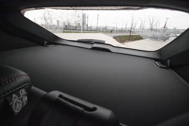 Az üvegtető alatt piros öltések dobják fel a fekete vinyl kárpitozást, az elektromosan nyolc állásban variálható ülések nagyjából kényelmesek kellő állítgatás után, a hátsó üléssor pedig igazán nem panaszkodhat a lábtér hiányára.