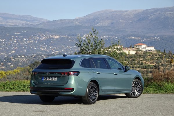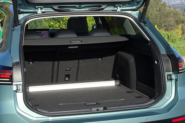 A villanyautókról ismerős külső dizájnelemek a Passat esetében is a korábbinál lágyabb formavilágot hoztak, egyben optikailag kisebbnek mutatják a Variantot. Ez főleg élőben vált egyértelművé, amikor egy pillanatra azt hittem, hogy Golfot látok a szálloda előtt. Nem is tévedhettem volna nagyobbat, mert csak magasabb nem lett. Elődjénél több mint 14 centivel hosszabb és kettővel szélesebb, a tengelytávja öttel bővült, az mind a hátsó lábteret növeli. Csomagtartója a Superbével egyezően 690 literes, és 1920 literesre bővíthető, ez 40, illetve 140 liternyi plusz.