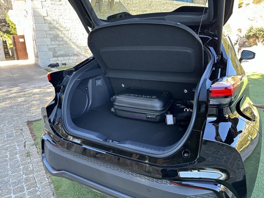 Ami a most bemutatott plug-in hibrid kivitel kapcsán érdekes, hogy a nagyobb akkumulátorral jár-e bármilyen kompromisszum a térkínálatban. A Toyota TNGA platformja ügyes ebből a szempontból, mert az akkumulátort a padlólemez alá, az üzemanyagtank elé tudták elhelyezni, így pedig nem tűnt el érdemi tér a csomagtartóból. A Toyota szerint a veszteség csupán 16-20 százalék körül van, mert míg egy hagyományos hibrid C-HR raktere 362-388 liter padlótól a kalaptartóig, addig a Plug-in Hybrid 220 már csak 310 litert.