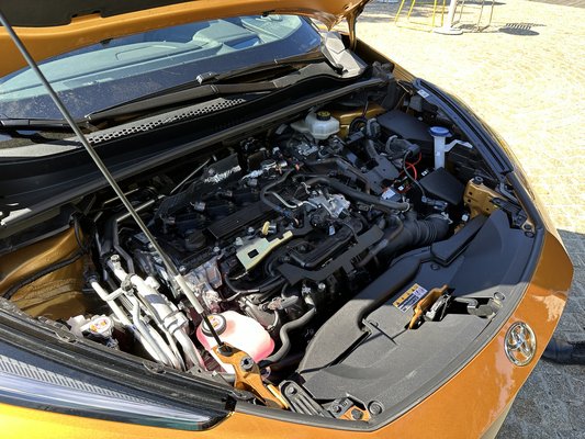 Emiatt csesztetik annyit szegény Toyotát, ezért mondják, hogy gyorsításkor az autó béget, mint egy bárány. Ez szerintem egy kicsit erős, bár vannak tényleg kellemetlen motorhangok néha, a C-HR-nél ezeket elnyomták. A kétliteres Atkinson-ciklust imitáló motor mélyen dolgozik a géptető alatt és csak heves gyorsításnál hallatja akaratunkat, de akkor sem kellemetlen. A váltáshang hiányzik, a zúgás állandó, de annyira ritkán találkozunk vele, hogy akár Cardi B-t is énekelhetne, attól se vérezne a fülem.
