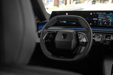Borzasztóan nagyot lépett előre a beltér is. Eddig is mertek játszani a formákkal és a térbeli részletekkel, de ezúttal végre működik is a végeredmény. Egészen futurisztikus, ahogy az élekkel határolt, merészen kanyargó felületek végül egy váratlanul koherens és emberközeli atmoszférát adnak ki. A szövettel borított, világos felületek és a fények miatt egyszerre otthonos és modern az E-3008 beltere. Az anyaghasználat és a minőség is példás: mindenhez jó hozzáérni, semmi nem nyiszog, minden masszívan a helyén van. A nagy, ívelt deszkára rakott kijelzők konzolja például annyira stabil, hogy érzésre az autó statikai eleme is lehetne.