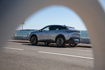 Mivel a bemutatót Cannes-ban tartották, a csodás francia Riviérán krúzolgathattunk az elektromos Peugeot-kkal. Bár arrafelé nem kimondottan rosszak az utak, az E-3008 sokszor borzalmasan kellemetlenül pattogott. A hosszabb egyenetlenségeket még emészthetően vasalta, de a kisebb úthibákon és a tartósan rossz minőségű úton szörnyen sprőd volt.