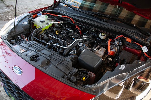 A benzinmotorja egy mai szemmel döbbenetesen nagy, 2,5 literes szívó Duratec, ami mellé egy 130 lóerő teljesítményű villanymotort raktak, a rendszer összteljesítménye 225 lóerő, a nagyfeszültségű lítium-ion akkumulátor pedig 14,4 kWh kapacitású, ami papíron akár 64 kilométer hatótávot is tud, de tapasztalataim alapján kényelmesen körülbelül 50 kilométerrel lehet számolni.