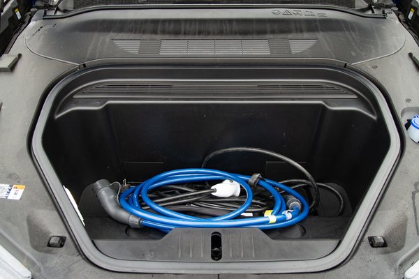 Csomagterére ugyanez elmondható. 402-1420 liter közötti, ami optimális egy család számára, de kiemelkedőnek mégis a 100 literes első csomagtartóját mondanám, ahova nem csak a töltőkábeleket, de akár más apróságokat is betehetünk. Nem úgy, mint a Volvo EX30-nál...