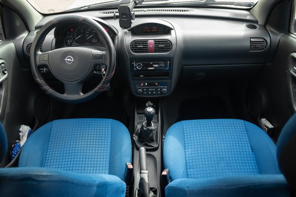 Innentől viszont jó hír, hogy a beltérből nagyon más problémánk nem lesz. Az autó elektronikailag stabilnak mondható, legfeljebb a gyújtótrafó hajlamos elhalálozásra ilyen korban, de ez nem egyéni dolog. Egyébként a tesztelt Corsa egészen ízléses belülről, hiszen kék, kockás huzatú üléseket kapott és ahhoz illő ajtókárpitokat. A műanyagok nem mállottak le az évek alatt és a klímapanel gombjai is épek. A beltér váratlanul jól megúszta az elmúlt 20 évet, egy pixelhibát nem találni a fedélzeti számítógépen.
