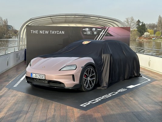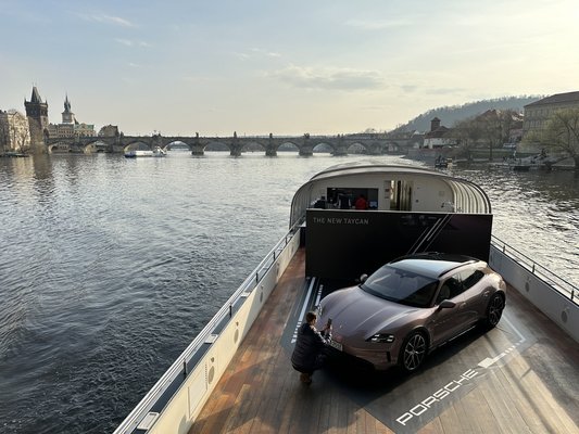 Eleve különös volt, hogy a hotelből nem szerveztek buszt a sajtóesemény helyszínére, kiderült, hogy nettó 1,5 perc séta a Moldva folyó partja, hol egy rendezvényhajó állt. Fekete lepel alatt a frissített Porsche Taycan, de jó fiúnak neveltek, nem nézek be a szoknya alá amíg nem engedik. Előjátéknak megfelelt egy kis ebéd, majd a prezentáció. A fej tele katalógusadatokkal, a has pedig Chili Con Carnéval, már csak a leplet kellett lerántani a lazacrózsaszín Porschéról.