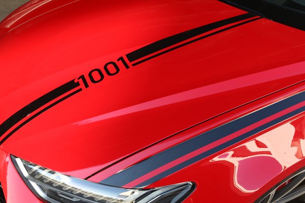A teljesítmény extrém növelésének eszközei szinte láthatatlanok maradtak, az ugyanis elsősorban a két finomított és átdolgozott turbófeltöltőnek köszönhető: nagyobb turbinatengelyek és méretesebb kompresszorkerekek, valamint megerősített axiális csapággyal és megnövelt turbófeltöltő nyomással dolgoztak a srácok. Módosították a töltőnyomás érzékelőket, nagyobb átmérőjűek a szívótömlők és a légszűrő doboz is. Szóval a géptér optikailag olyan maradt, mint a sorozatban készülőé, kivéve a karbon fedelet. Ehhez tesz még hozzá a módosított szívó- és a nagyobb térfogatú kipufogórendszer. A váltó esetében a nagyobb teljesítményhez hangolták a szoftvert, az alsó fokozatokban a kapcsolási fordulatszám 7100 fordulat/perc, a startautomatika pedig 2900-as percenkénti fordulatszámról indítja a kilövést. A maximálisan elérhető 1250 newtonmétert elektronikusan korlátozták – biztos, ami biztos alapon. Hogy megértsük, mennyire brutális adatok ezek, ismétlésképp: a bika erős széria RS6-os 600 lóerőt és maximum 800 newtonmétert tud, a performance ugye 630-at és 850-et.