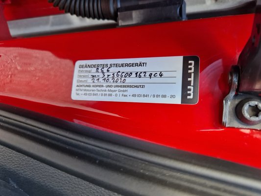A matricázás azt hirdeti, hogy az MTM harminc éves. No, itt van egy kis turpisság, mert ahogy az MTM alapítója (= Motoren-Technik-Mayer) Roland Mayer weboldalukon írja, „a 1980-as évek közepén fiatal mérnökként részt vettem az Audi Quattro mára legendássá vált öthengeres soros motorjának fejlesztésében, majd 1990-ben alapítottuk meg az MTM névre keresztelt céget. Termékpalettánk ma már az Auditól a Seaton, a Skodán és a VW-n át a Ferrariig, a Lamborghiniig, a Bentley-ig és a Porschéig terjed, akkoriban azonban még senki sem gondolta, hogy az MTM lefedi ezt a széles portfóliót.” Szóval ez a kocsi 2020-ban készült el, nem vadonatúj, van benne több mint hatvanezer kilométer – szóval, lehet, hogy ez inkább egy C8-as power kombit bemutató használtteszt?