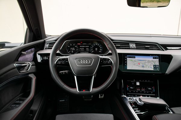 Egy pécsi forgatásra menet, autópályán 130 km/órával, napos időben 29 kWh/100 km körül pusztította az áramot, az egy későbbi, tisztán országúti körön derült ki, hogy tud 20 kWh alatt is Audiként, vagyis lendületes tempóval, klímával, zenével utazni. A Sportback még viszonylag hozta a gyári értékeket, ezúttal rosszabb volt a légellenállás, és az időjárás. Az erős szél is sokat ronthatott a hatásfokán, városi járkálás során mindjárt előnyére változott a hozzáállása, az utolsó töltés után már 498 kilométert írt ki. Mégis kicsit sokallom, mert ez egy utazóautó, annak is készült.