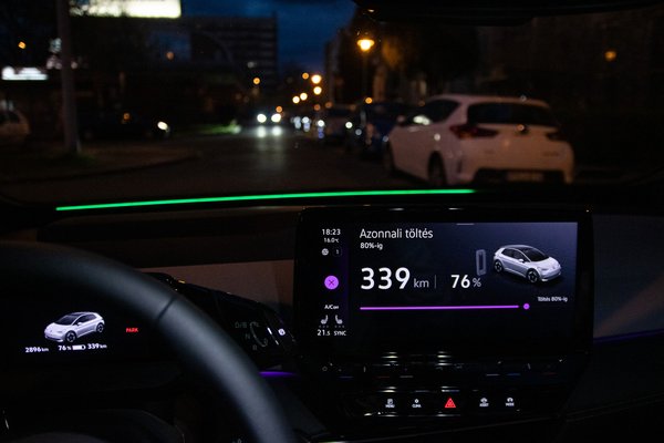 A Pro S esetében a valóságban megtehető táv a legtöbb esetben ötszáz kilométer felett alakul. Teljes töltéssel nekem kiírt 540 km-et, majd 522 km-et is akkor, amikor épp 19,2 kWh volt a fogyasztásom. Az ID.3 átlagos villanyéhsége viszont ennél jóval alacsonyabb.