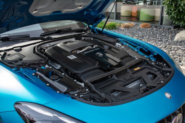A 63 4Matic+ csúcsváltozat Affalterbachban egy ember kézi munkájával készülő, 4,0 literes, 585 lóerőt és kereken 800 Nm nyomatékot leadó biturbó V8-asa és kilencfokozatú váltója az SL-étől eltérő vezérlést kap. Az olajfürdős, súrlódó tengelykapcsolóval, a pályára szánt Race Start funkció aktiválásával elérhető legjobb 0-100-as sprintidő 3,2 másodperc, a szintén zárt pályán releváns végsebesség 315 km/óra! Teljesen nyilvánvaló, hogy most sem a fogyasztás, sem a szén-dioxid kibocsátás nem téma, egy ilyen kis példányszámú sportgép esetében annak kell örülni, hogy még lehet kapni.