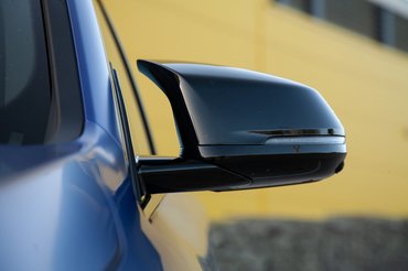 Az arca egyébként egészen hagyományos: a széles vesék vízszintesek, és a szúrósan néző fényszórókat se találták fel újra. A lökhárítón hatalmasak a légbeömlők, és az egészet olyan élek tagolják, amik pengének is beillenének. A gigantikus, szélesre húzott kerékjáratok mokánynak mutatják az autót, amire a 21 colos – te jó ég... – felnik rátesznek egy újabb lapáttal. Az eleve nem szerény formához és a színpadias, sportos kiegészítőkhöz tökéletesen illik ez a zseniális – és baromi drága – matt kék szín.