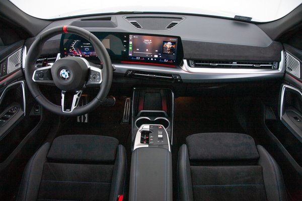 Amilyen túlzó kívülről az X2, annyira váratlanul visszafogott belül. Az X1 belsejét egy az egyben beillesztették az X2-be, így aki ült már az előbbiben, annak semmi nem lesz újdonság. Ebben itt egyébként nincs semmi pejoratív, már az X1 utasterét is szerettem. Ez a sportos, vezetőközpontú dizájn nekem még mindig nagyon adja, ebben a színösszeállításban pedig kimondottan jól mutat. Az enyhén túlzó, sportos elemek miatt biztos van, akinek ez már sok, ezért jó hír, hogy ennél kevésbé harsányra is lehet konfigurálni az X2-t.