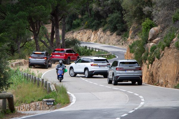 Katalónia északi tartományában teszteltük az autókat, ami több szempontból is szerencsés: az utak minősége a hazaihoz képest isteni, vannak szakaszok, amik kimondottan izgalmasak, és más gyártók is szeretik ezekre terelni az újságírókat – pl. a Honda ZR-V-t is Montserrat szerpentinjein hajtottam, a gyönyörű tájak mellett nem volt könnyű a Kodiaq-ra figyelni. Csodára ne számítsunk, az új Kodiaq nem különb a többi SUV-nál. Kormányzása könnyű, még sport módban is, futóműve pedig kényelmes, amire az újgenerációs DCC Plus aktív felfüggesztés rá tud tenni egy lapáttal. A kanyarokat nagyon jól veszi így, az úthibák kezelésének igazi tesztje majd Magyarországon lesz.
