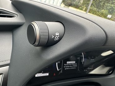 Az UX kényelmes autó, jók az anyagok, de vannak nagyon furcsa részletek, mint például a műszercsoport takarójába szúrt bikaszarvak. A bal tekerőnek néz ki, de csak egy gomb, a jobb oldalin pedig menetmódot választhatsz az Ecótól a Customig és a Normaltól a Sport vagy Sport+-ig. Azért van ennyi opció, mert a jól felszerelt UX adaptív csillapítású futóművet kapott, mely Sport+ módban érezhetően felkeményedik és elkezd ütni, cserébe az autó stabilabban viselkedik nagy sebességnél.