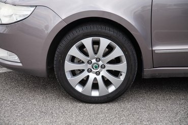 Bár ez a második generációs Superb egy igen jól felszerelt darab, 2010-ben még nem volt elterjedt a LED-es technológia, így ebben az autóban is Bi-Xenon egységeket találunk. Ezek egyébként mai szemmel nézve is váratlanul jók, követik a kanyart is, sőt, a tulajtól tudom, hogy ha valami elromlik bennük, emberi áron szervizelhetők. A gömbölyded vonalakon, a nem túl hangsúlyos éleken és a magas felszereltséghez járó, de csak 17 colos felniken is látszik az autó kora.