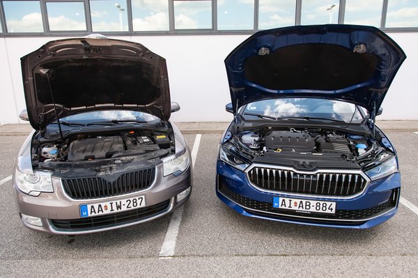 Mindkét Superbben nagyon hasonló, kétliteres CR TDI kerreg: az öregé 170 lóerőt tud, a fiatalé 150-et. Előbbi az akkori legerősebb változat, utóbbiból lehet kapni 190 lóerőset is. Reméljük, hogy az újban a ma már oldschoolnak tűnő technika ugyanolyan tartós lesz, mint a régiben, és az is kibír majd 300-400 ezer kilométert. Pontos, nagy idősávot lefedő fogyasztási adatom csak a régiről van: az 6,8 litert eszik vegyesen, gyanús, hogy hasonló használat mellett az új is nagyjából ennyit kér.