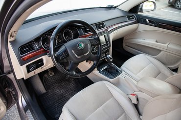 A 2010-es Superb belső dizájnján érződik leginkább, hogy az egy távolinak tűnő kor szülötte. A formák nem túl izgalmasak, cserébe az anyagminőség príma, nem nyiszog semmi, kopás is alig van. Érdekesség, hogy a két műszerfal íve mennyire hasonló, bár ezt tényleg csak akkor lehet észlelni, ha egymás mellett áll a két generáció. Az ülések ebben az esetben is jók, de egy hosszabb ülőlapot elbírnának. Meglepő, hogy bár világos a belső, mégse tűnik szomorúan leéltnek, jól bírja a kiképzést, még a bőrök is szépen tartják magukat.