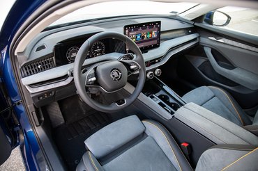 Ahol borzasztóan nagyot változott a Superb, az a beltér: az új modell kellően modern, de nem esik túlzásokba. A dizájn letisztult, de gusztusos és otthonos: nem akarták feltalálni a spanyolviaszt, simán csak összeraktak egy szép és jól használható belsőt. Van laptopnyi kijelző, de jutottak tekerők a klímának, amikbe kicsi kijelzőket integráltak, így a funkciójuk változtatható. Klassz a sok Alcantara, az ülések közel vannak a tökéleteshez, mindenhol van van elég tároló. Ezt így kell!