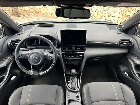 A külső teljesen változatlan maradt, ahogy a belső térben sem lehet sok újdonságot észrevenni, ez a TNGA-B kisautós platform egyik legtágasabb autója, a Yaris és az Aygo X épül vele egy alapokra, illetve természetesen ugyanez a Lexus LBX is. 4,18 méter hosszú, 1,76 méter széles és 1,59 méter magas, a csomagtere 397 liter, a hátsó üléseken pedig van annyi hely, hogy két 180 centiméter magas ember egymás mögött normálisan utazzon.