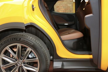 A kerékjárati ívek kötelező SUV-s műanyag betéteket kaptak, a peremükön pedig apró légterelő figyel, aminek a Lexust ismervén bizonyára célja van. Az pedig különösen mókás részlet, hogy a japánok annyira belejöttek az akkupakkot álcázó oldalsó műanyagok használatába, hogy az öntöltő hibrid LBX-en is helyet kaptak, pedig esetében nincs is mit eltakarni, hiszen az új, bipoláris NiMH csomagot a hátsó ülések alatt találjuk. Tekintsük úgy, hogy ez az LBX talpa, ha már a cél egy sportcipőt idéző formavilág volt.