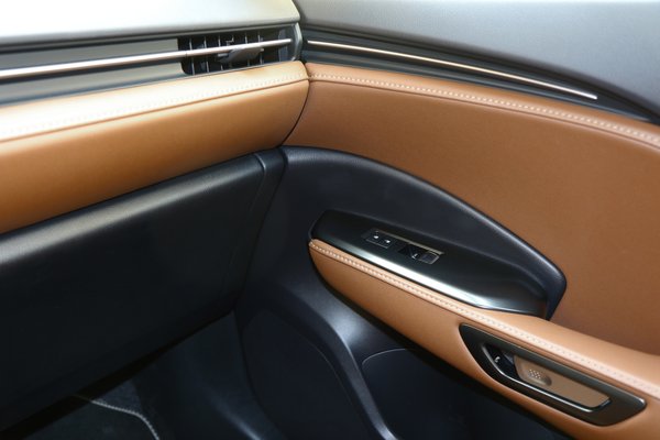 A Tazuna (gyeplő) koncepció jegyében tervezett vezetőközpontú utastérre vissszatérve fontos észrevenni, hogy nemcsak az átláthatóság megteremtése, de az ajtópanelen végigfutó belső élek házasítása a műszerfal vonalaival is megtörtént. Vagyis becsukva találkoznak, nincs több centis szintbeli eltérés közöttük, ami az európai szemnek oly kellemes. Kellett azért várni rá, de itt van, vegyük észre, dicsérjük meg. Továbbá kiemelendő, hogy a 9,8 colos központi kijelzőt sikerült esztétikusan elhelyezni, nemcsak egy utólag odahányt tabletként csúfoskodik, ahogy az is pozitív, hogy csak kevés könnyen karcolódó zongoralakk felületet használtak.