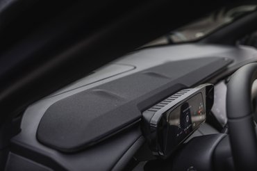 Én ezt a jópofa, de nem forradalmi megoldások közé sorolom, a vezető elé helyezett, a jobb olvashatóság kedvéért leegyszerűsített kijelző fölött látható B&O hangprojektort viszont már a nem fontos, de menő kütyük halmazába teszem. A Volkswagen kapcsolók maradtak, mert az elektromos rendszer ezekkel működik együtt, a változtatás sok pénzbe került volna. A kisebb tengelytáv ellenére bőséges a lábtér, a rövidebb kasztni miatt ha csak pár literrel is, de elmarad az ID.4-étől a 470 (tetőig pakolva 536) literes csomagtartó, frunk biztonsági okokból nincs.