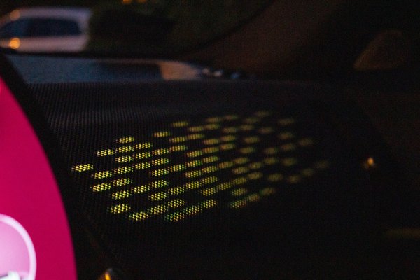 - Timeless: A retro mód, illő arany színű hangulatvilágítással, miközben a hangszórók egy belső égésű motor hangját imitálják.