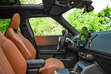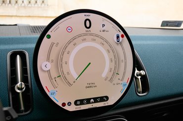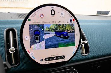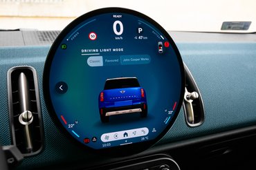 Ahogy egy nappali központi eleme a hatalmas televízió, úgy a Countryman lényege is egy képernyőben összpontosul. 240 mm átmérőjű kerek OLED kijelzője jelenleg egyedülálló a piacon. Ezt az egyediséget az Android Auto és Apple Carplay nem tudja kihasználni, ugyanis mindkettő négyzetes elrendezésben működik. Ez nem is akkora baj, a Mini új operációs rendszere felhasználóbarát, látványos és tele van olyan felesleges trükkökkel, mint a DJ-zés és a viccet mesélő, de ablakokat lehúzni képtelen személyi asszisztens. A rendszer még gyerekcipőben jár, a menüpontok közötti váltás olykor szaggat, a profilokhoz kötött beállítások összeakadhatnak. Ezek mind olyan problémák, amik pár frissítéssel javíthatóak.