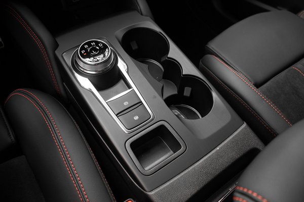 A panel felett maradtak a szellőzők, és ott a frissítés éke, az új kijelző. Számomra örvendetes, hogy a Ford most nem felfelé (ahogy főleg az amerikai modelljeiben), hanem inkább széltében sodorta az új panelt, így kicsit olyan, mint egy ultraszéles monitor, annak minden előnyével. Egészségesen elfér rajta az Apple CarPlay vagy az Android Auto, míg mellette tud maradni egy sáv a rendszer saját felületének is. Azzal, hogy megkapta a Ford SYNC 4-et, a korábbi Kuga – szerintem – legnagyobb hibáját is kijavították. A marketingszöveg szerint dupla olyan erős hardver van a rendszer mögött, amire nagyon szükség volt, mert így már nem olyan kezelni, mint egy 15 éves okostelefont.