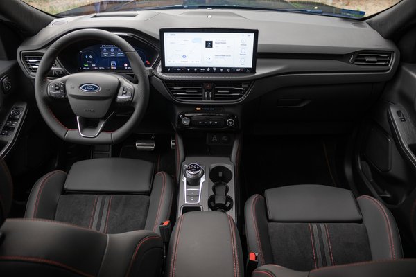 Pont annyit reszeltek a külsőn, hogy frissnek hasson az ötéves modell, de a felsoroltakon túl nehéz bármi változást mutatni, amíg be nem ül az ember. A szorgos kezek itt ahelyett, hogy kiradírozták volna a középkonzol rajzait, összeollózták és átrendezték azt. Szívfájdalmam, hogy eltűnt a fizikai klímapanel, pedig az pont egy modern és jól használható elem volt a korábbi Kugában. Így, hogy 8-ról 13,5 colosra nőtt a központi kijelző, úgy gondolták, jó ötlet az aljára biggyeszteni a szellőztetés vezérlését.