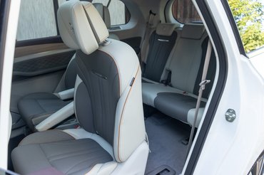 Ennyi ember valószínűleg ritkán ül majd benne, mert bár az első két üléssor fejedelmi, a harmadik azért már kicsit szűkösebb. Eleve az, akit a középső ülésre száműznek, egy satuban érzi majd magát, míg a másik két ember csak akkor örül a fejének, ha nem nőtt 170 centinél magasabbra.