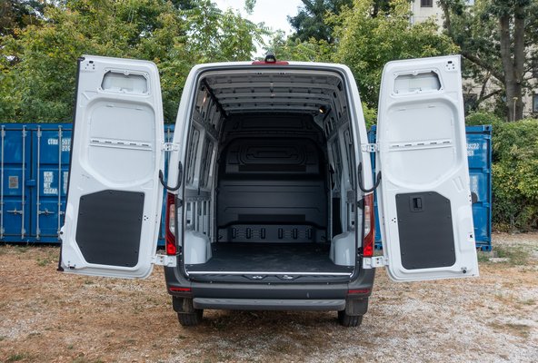 Az eSprinter három akkumulátor változattal (56, 81, 113 kWh) és két motor-teljesítménnyel (136 és 200 Le) rendelhető, amelyek ráadásul kombinálhatók. Így születhetett meg az általam is használt variáns, ami a legkisebb akkuhoz a legbikább motort kapta, és utóbbi miatt olyat gyorsult álló helyzetből, hogy azt jópár személyautó is megirigyelhetné. Ahogy mondani szokták, tudott meglepetéseket okozni!