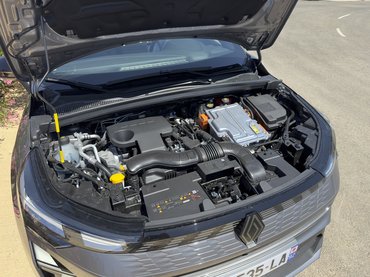 Egyféle hajtáslánccal kapható a Symbioz, a Renault egyik legjobb és legokosabb hajtásláncával, azzal a hagyományos full hibriddel, ami úgy tud hibrid lenni, hogy közben nem pörgeti a végtelenségig a motort normál használat közben, nagyon finoman el lehet vele indulni – nem elhanyagolható szempont manapság, sok autó meglepően rossz ebből az aspektusból – mégis egyszerű, 1,6 literes, négyhengeres szívómotor van mögötte.