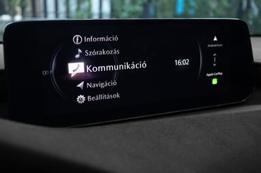Ehhez arra is szükség volt, hogy a Mazda megcsinálja a középkonzolon a BMW iDrive szerű irányítópultot, amit már a CX-60-ban is szerettem. Egyfelől az egész rendszer átgondolt, könnyű benne navigálni és logikus a gombkiosztás. Másfelől a gombok nyomásérzékenysége, a tekerők klattyanása és a működés sebessége is arra ösztönöz, hogy a tapizás helyett ezeket használd. Ráadásul minden annyira jó helyen van: a könyöklőn támasztva a jobb kezemnek nem fárasztó a gombon pihenni és túrni a funkciókat, a tárcsa jobb oldalán elhelyezett médiavezérlő miatt pedig szinte el is felejtettem a multikormányon lévő vonatkozó gombokat.