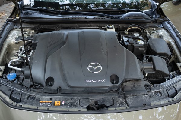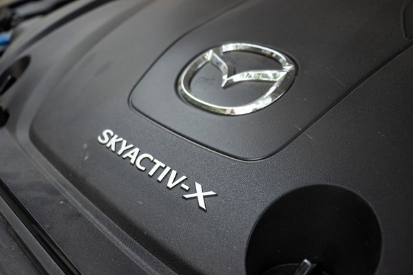 Az igazi ínyencség a Mazda Skyactiv X motorja, ami nemrég kapott egy kis e- előtagot, hiszen csatoltak hozzá egy mild hibrid rendszert. A technika nem annyira új, 2019 óta szerepel a 3-as és CX-30-as Mazdákban, de akármennyire forradalmi megoldás, valahogy az elmúlt öt évben nem terjedt el túlzottan. Nem látom azt, hogy minden gyártó hasonló megoldáson dolgozna, és a Mazda által beígért bőséges X motorcsalád is egyelőre elmaradt. Pedig a technika izgalmas, hiszen ez egy dízel üzemű benzinmotor – mondja a laikus, pedig nem erről van szó. Ez hivatalosan egy szikravezérelt kompressziógyújtásos (SPCCI) motor.